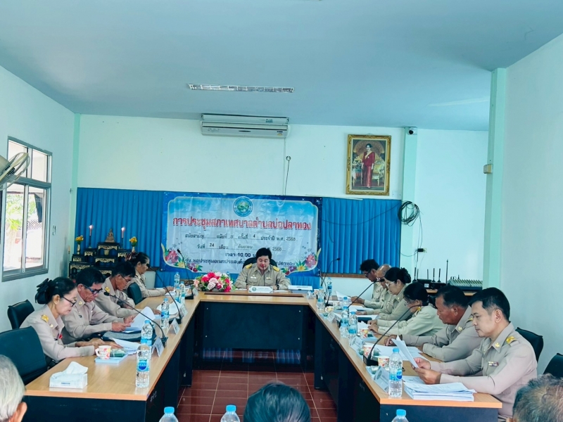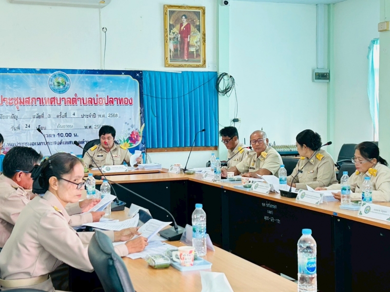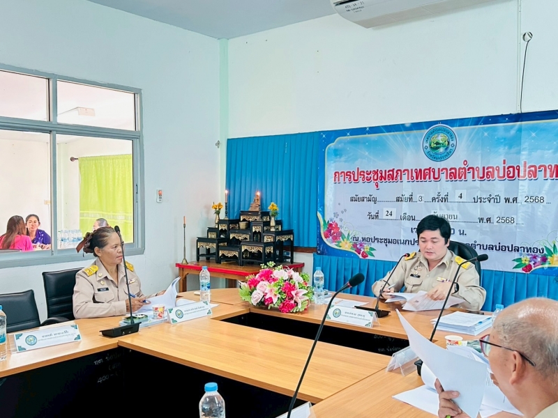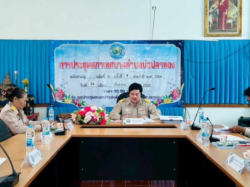 เทศบาลตำบลบ่อปลาทอง ดำเนินการจัดประชุมสภาเทศบาลตำบลบ่อปลาทอง สมัยสามัย สมัยที่ 3 ครั้งที่ 4 ประจำปี พ.ศ. 2568 โดยมี นายสำรวม สุขตะคุ ประธานสภาเทศบาลตำบลบ่อปลาทอง เป็นประธานในการประชุม พร้อมด้วยสมาชิกสภาเทศบาลตำบลบ่อปลาทอง นายทิพย์ ดีพรมราช นายกเทศมนตรีตำบลบ่อปลาทอง พร้อมด้วยคณะผู้บริหาร ปลัดเทศบาล หัวหน้าส่วนราชการ และเจ้าหน้าที่งานที่เกียวข้อง เข้าร่วมประชุมดังกล่าว