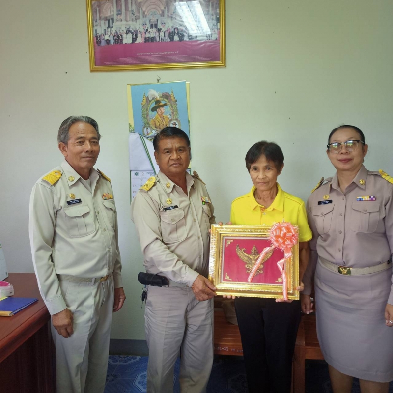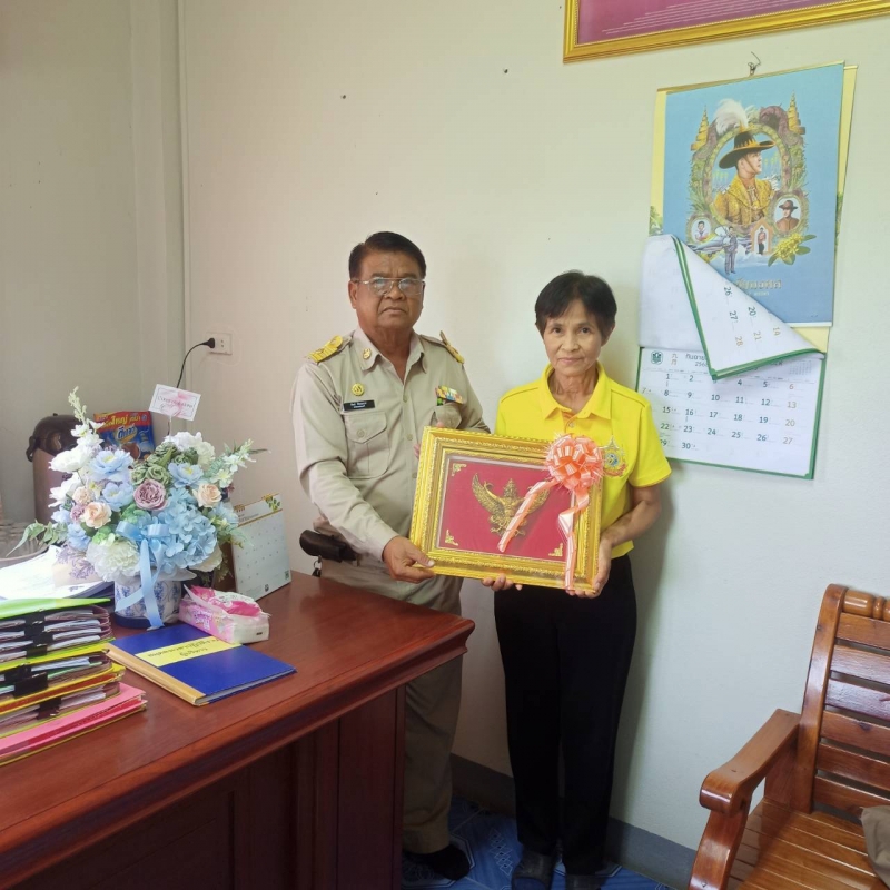 คณะผู้บริหาร สมาชิกสภาเทศบาล หัวหน้าส่วนราชการ เจ้าหน้าที่เทศบาลตำบลบ่อปลาทอง ร่วมแสดงความยินดีและมอบของที่ระลึกให้กับ นางสุกัญญา อ่อนศรี เนื่องในโอกาสเกษียณอายุราชการ ประจำปีงบประมาณ 2568