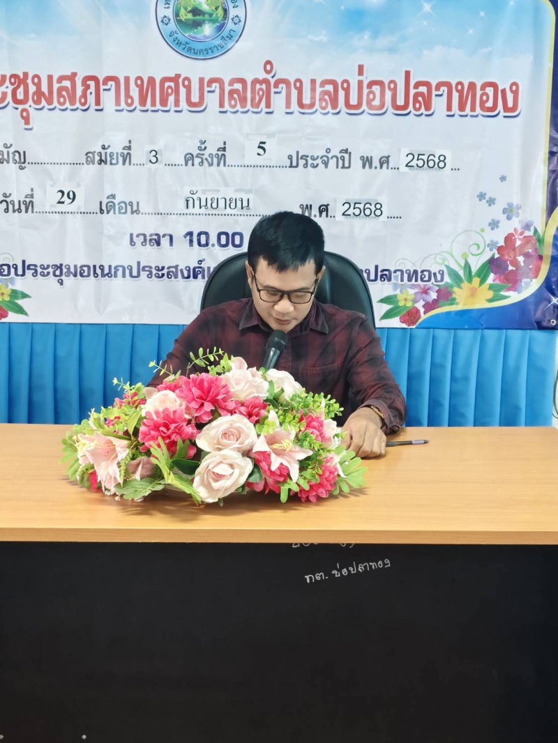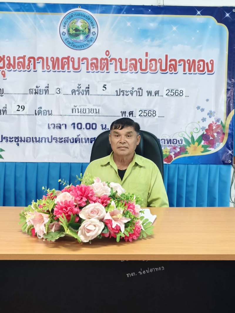 วันพุธที่ 12 พฤศจิกายน 2568 เวลา 10.00 น. ณ ห้องประชุมเทศบาลตำบลบ่อปลาทอง