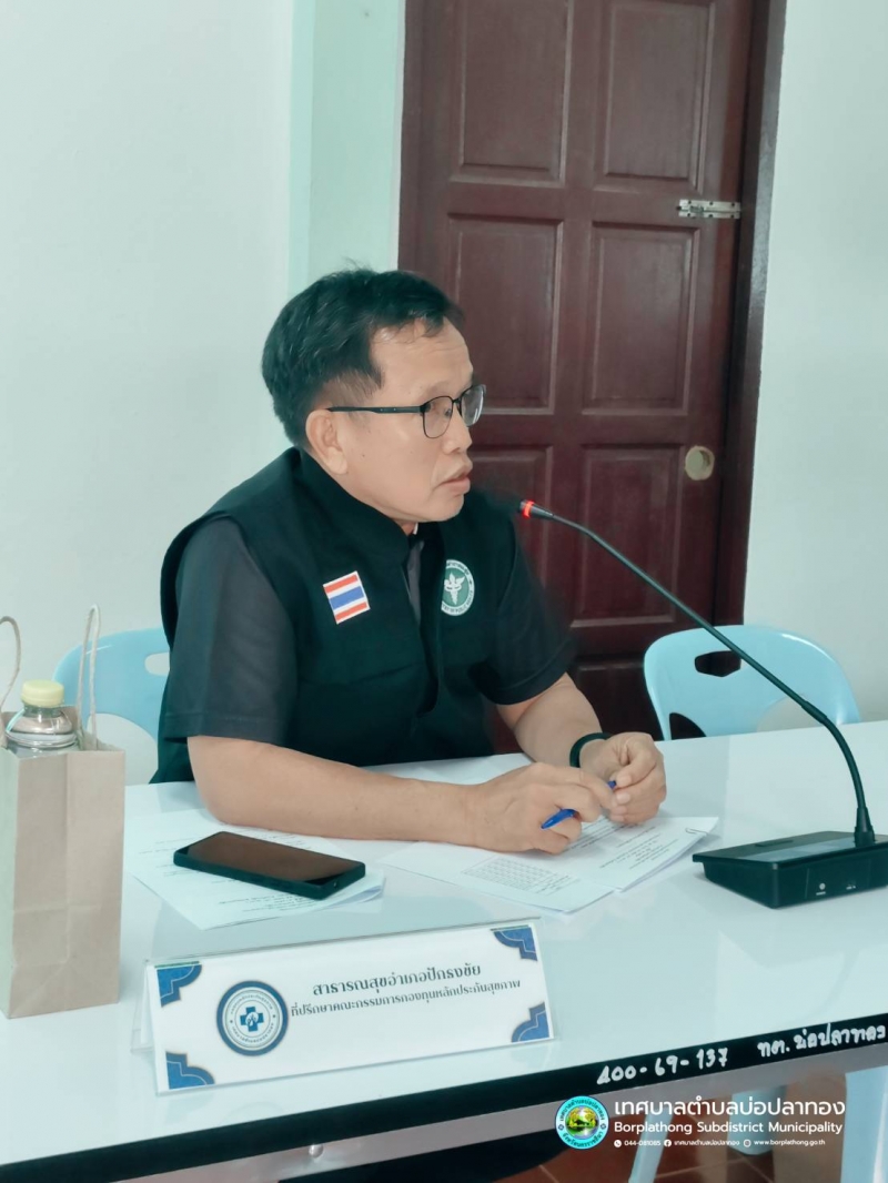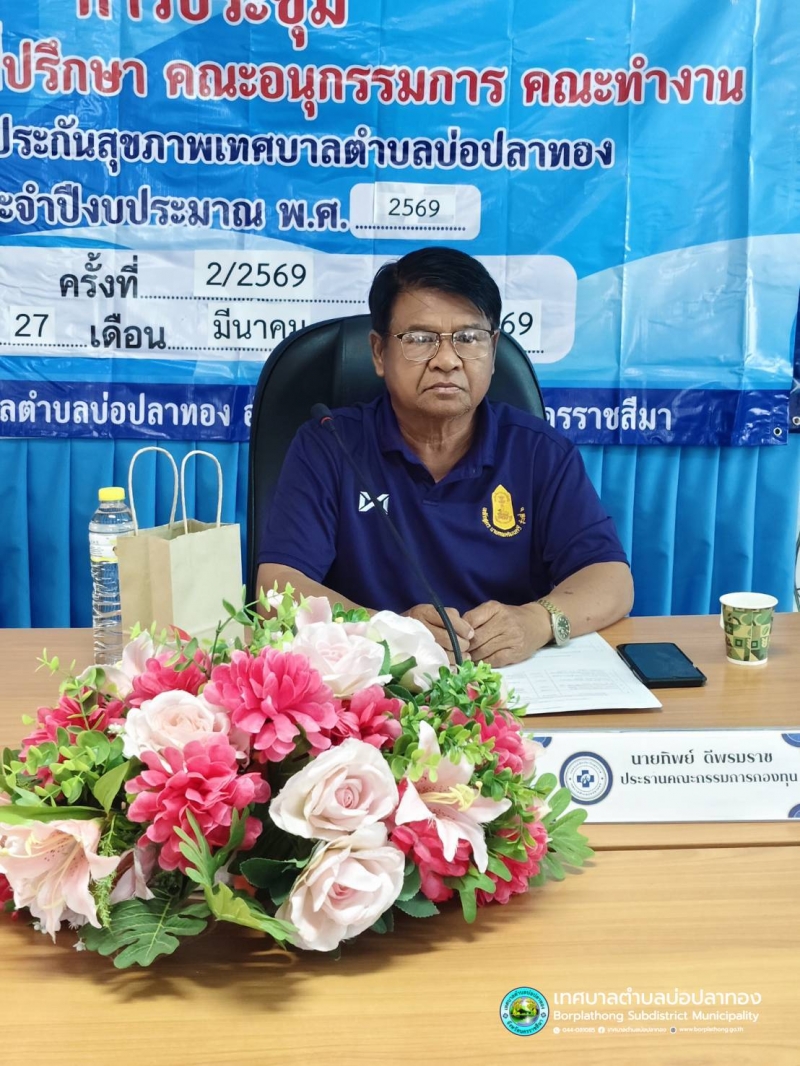 งานสาธารณสุข สำนักปลัด เทศบาลตำบลบ่อปลาทอง ดำเนินการจัดประชุมคณะกรรมการกองทุนหลักประกันสุขภาพเทศบาลตำบลบ่อปลาทอง โดยมี นายทิพย์ ดีพรมราช นายกเทศมนตรีตำบลบ่อปลาทอง เป็นประธานในการเปิดประชุม